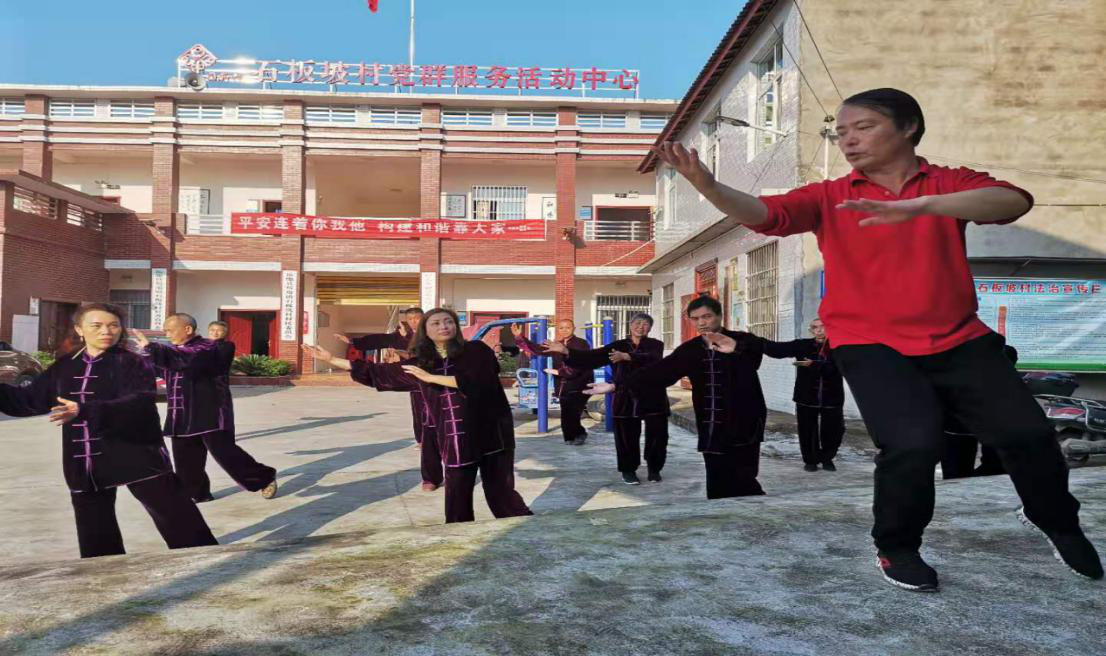 在前期走访调研中得知,“因病致贫”是导致贫困的重要因素,不仅治疗费是巨大负担,疾病还使得他们失去劳动力,也夺取了他们的幸福感,为此,新葡的京集团35222vip提出“体育健身养生扶贫”方案,希望通过参与体育活动让村民们掌握一些基本的健身养生知识和方法,以期丰富当地村民的文化生活,养成良好的生活习惯,强势健体,远离疾病。新葡的京集团35222vip此次扶贫为石板坡村文化活动室捐助了一批体育器材和太极拳练习服装,为村民健身提供物资保障,同时,派出了学院武术专家廖沛然教授,为村民骨干进行太极拳的培训。廖沛然老师耐心教学认真辅导,通俗易懂的养生健身知识介绍以及标准的技术示范吸引着参训人员,尽管天气炎热,参与培训的骨干仍然热情高涨,培训活动结束后大家纷纷表示收获满满。